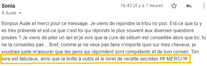 Et surtout, il contient toutes les informations nécessaires pour se lancer dans le No Poo, apprendre à connaître ses cheveux et déterminer comment s’en occuper en fonction de VOS besoins personnels.