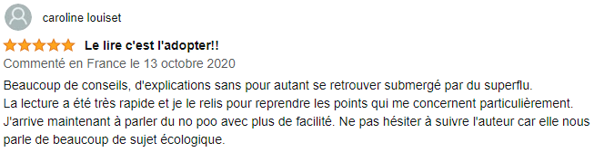 J'avais déjà accompagné plus de 700 personnes (et je continue aujourd'hui) dans leur transition vers le No Poo, lorsque ce livre est paru. Son but : que plus de personnes encore puissent profiter de cette expérience !
